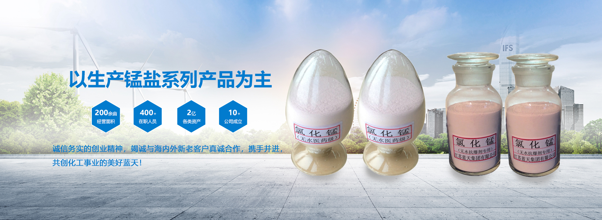 淮安市藍(lán)天化工有限公司,是以生產(chǎn)錳鹽等無(wú)機(jī)鹽系列產(chǎn)品為主。農(nóng)藥中間體、醫(yī)藥中間體加工、新產(chǎn)品研發(fā)為一體的大型綜合性民營(yíng)企業(yè)。公司業(yè)務(wù)遍及海內(nèi)外數(shù)十個(gè)城市與地區(qū),現(xiàn)擁有各類(lèi)資產(chǎn)2億多元,生產(chǎn)經(jīng)營(yíng)面積200余畝,員工400多人。其中各類(lèi)專(zhuān)業(yè)技術(shù)人員占1/3以上。并具有較強(qiáng)的技術(shù)研發(fā)和生產(chǎn)能力?,F(xiàn)已初步形成一支高素質(zhì)、敬業(yè)愛(ài)崗、廉潔高效的作戰(zhàn)團(tuán)隊(duì)。